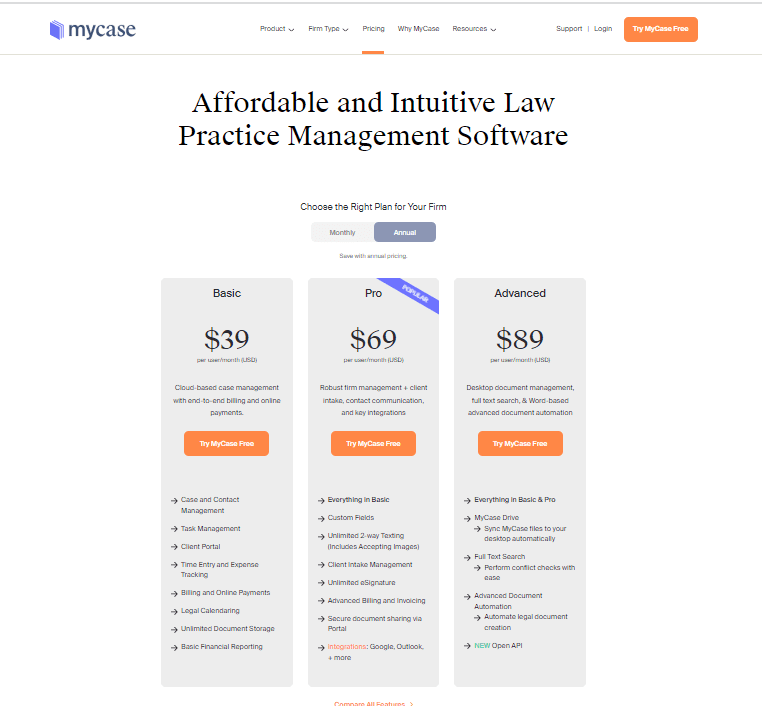 - Affordable pricing plans that suit solo practitioners and small law firms.