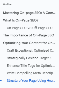 - Subheadings (H2s, H3s, and so on).